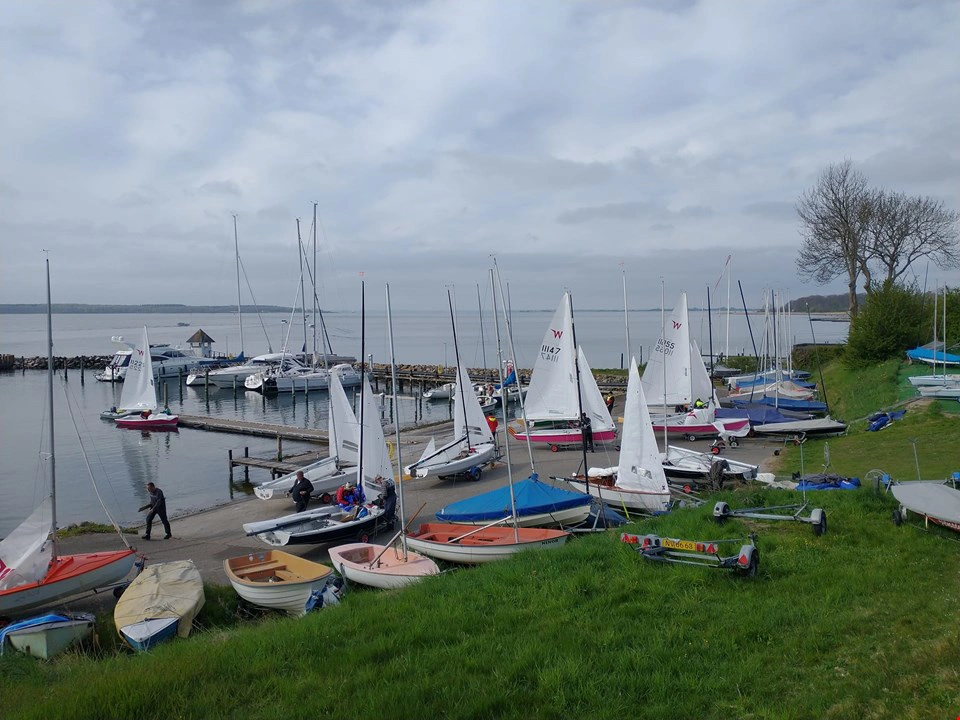 Det var dejligt igen at kunne sige goddag til de kendte omgivelser i Svendborg Sunds Sejlklub, samt nye og gamle sejlervenner. Wayfarersejlerne havde for anden gang fået lov til at bruge Svendborg Sunds Sejlklub, der igen stillede både frivillige og faciliteter til rådighed for at afholde årets forårsstævne. Solen var højt på himlen, og der var 3 m/s fra N/V og ca 12 grader, da 14 håbefulde besætninger riggede til.